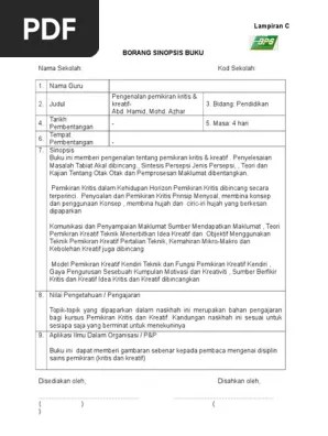 Lampiran c borang sinopsis buku nama sekolah: Contoh sinopsis buku untuk ladap.